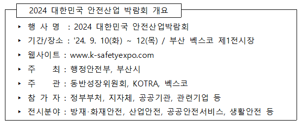 3. 지원내용 : 대한민국 안전산업 박람회 참가비 지원